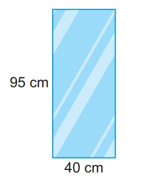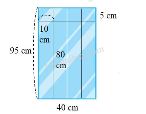 Từ một tấm kính lớn (như hình vẽ bên) người ta cắt ra thành 4 tấm kính hình chữ nhật, mỗi tấm có chiều dài 90 cm, chiều rộng 10 cm.