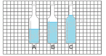 Vẽ mực nước ở ba chai để chai A có ít nước nhất, chai C có nhiều nước nhất.