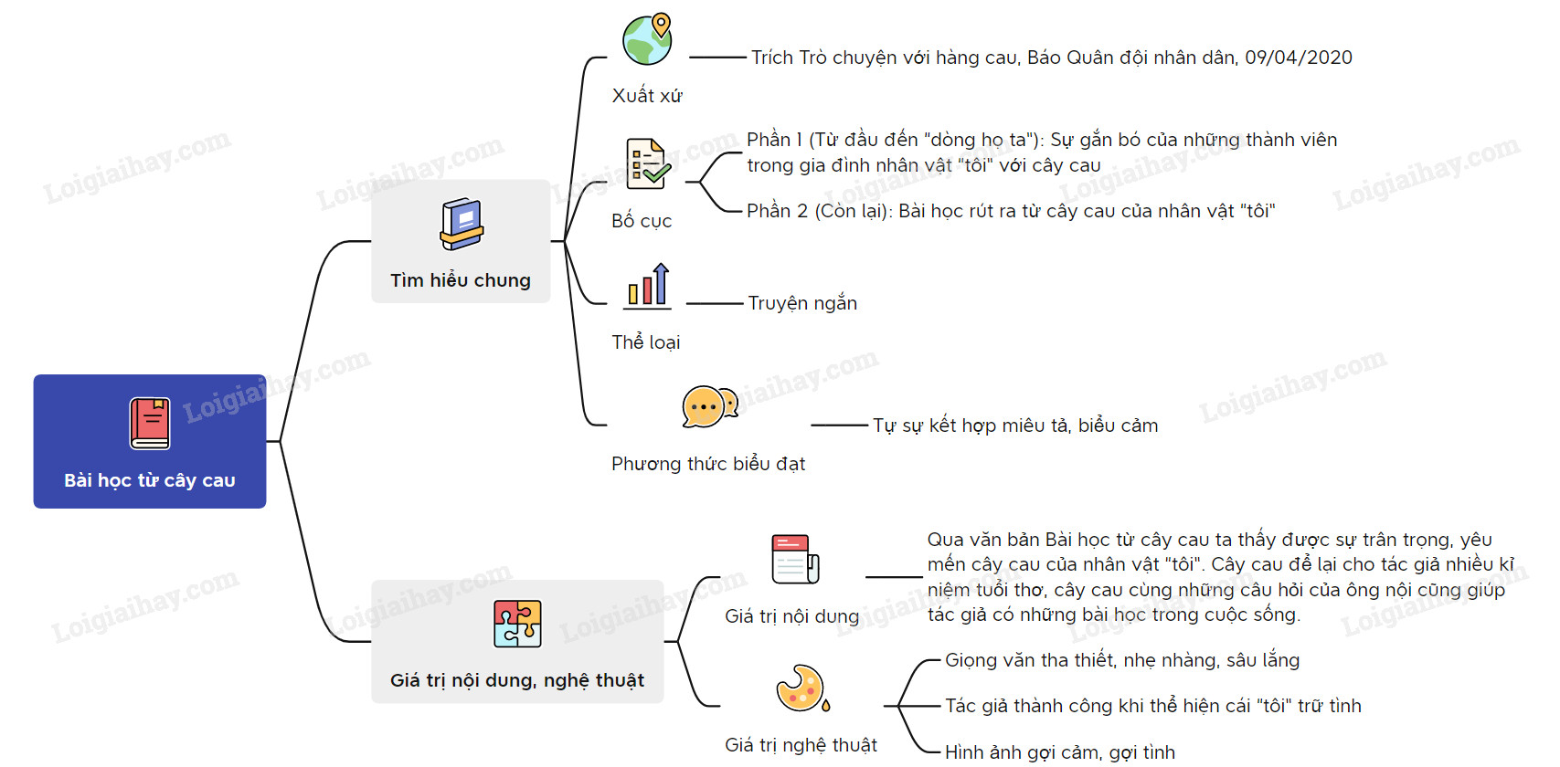 Sơ đồ tư duy văn bản Bài học từ cây cau: