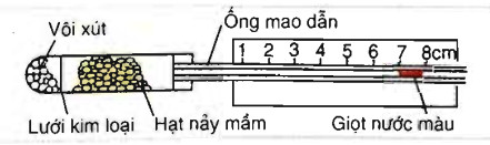 Câu 97.Khi làm thí nghiệm chứng minh sự hô hấp ở hạt, người ta thiết kế thí nghiệm như hình vẽ sau: