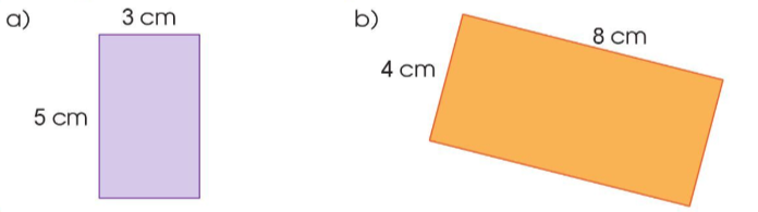 – Hình chữ nhật có chiều dài là 4 cm, chiều rộng là 3 cm (Vì 4 × 3 = 12 cm2)