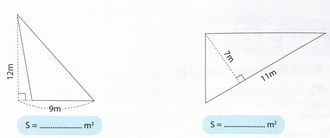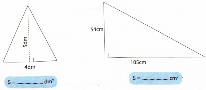 Tính diện tích mỗi tam giác sau rồi viết kết quả vào chỗ chấm: