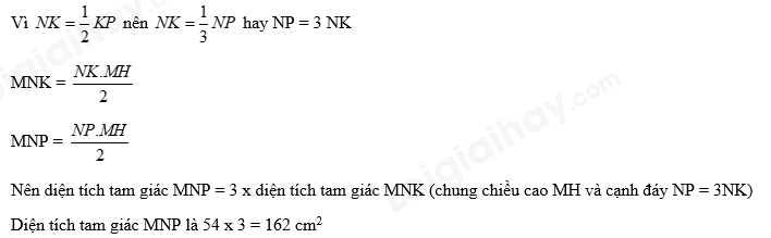 Tính diện tích hình tam giác MNP, biết diện tích tam giác MNK bằng 54 cm2