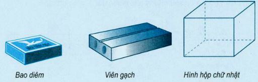 Hình hộp chữ nhật có ba kích thước: chiều dài, chiều rộng, chiều cao.