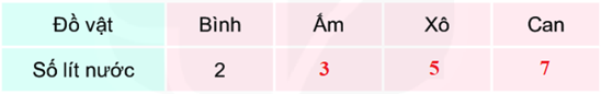 Theo kết quả bên trên ta có ấm đựng được 3 \(l\) nước và can đựng được 7 \(l\) nước.
