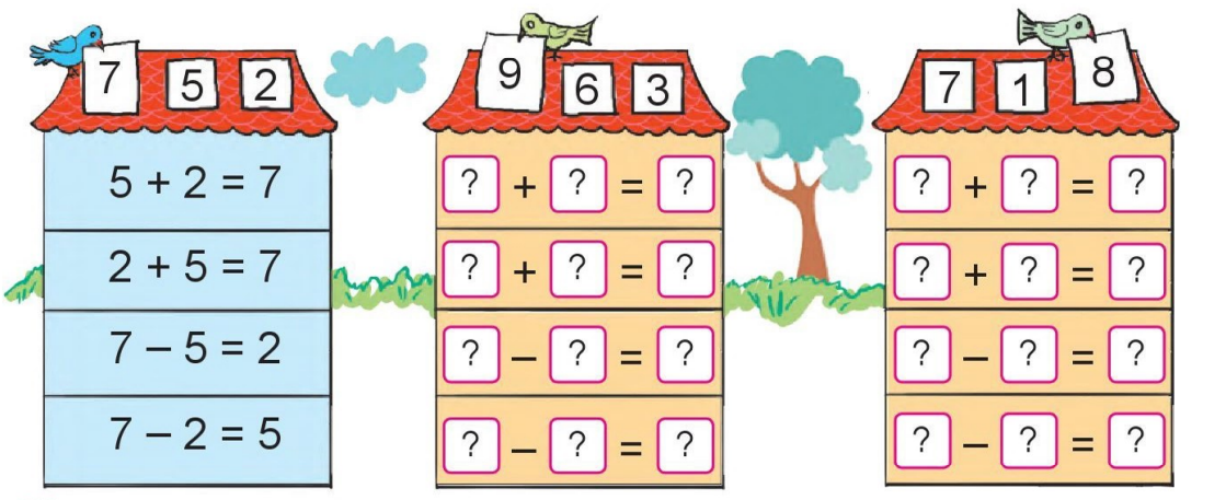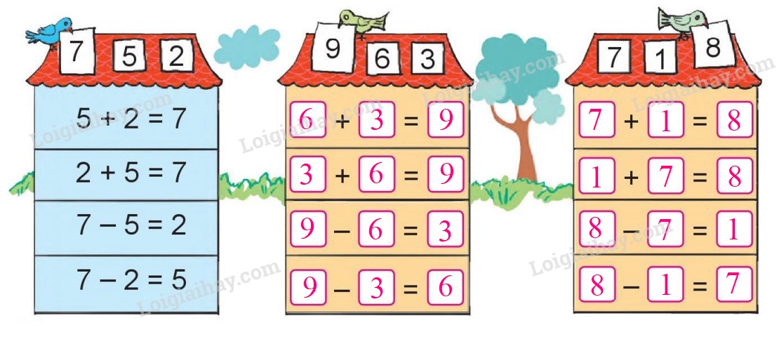 Dựa vào các số đã cho để điền được các phép tính thích hợp theo mẫu.