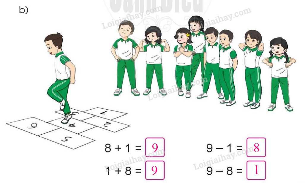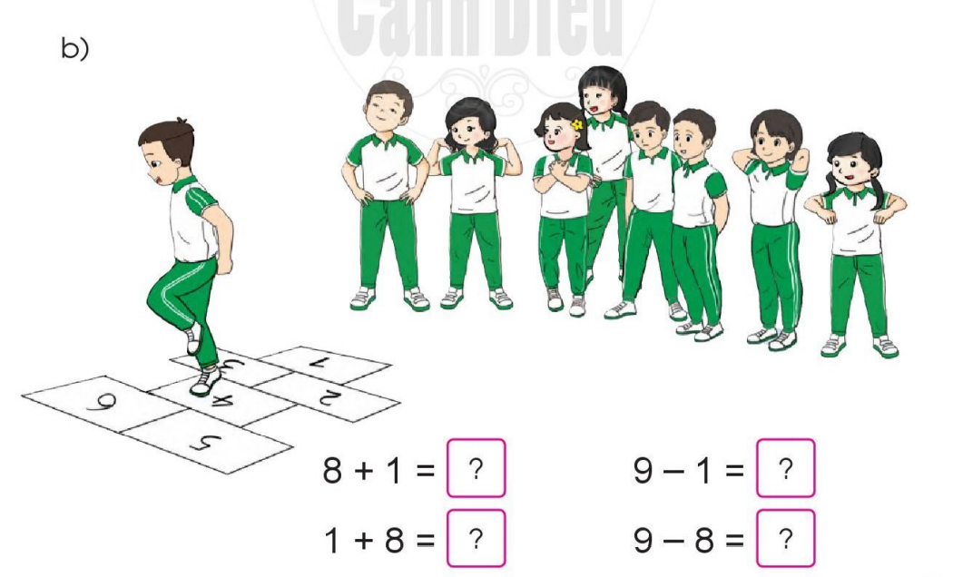 b) 7 – 1 = 6                    9 – 4 = 5                      10 – 2 = 8