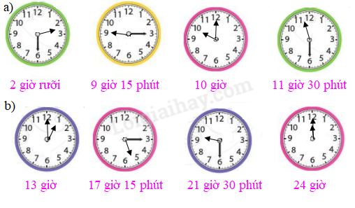 a) 2 giờ rưỡi, 9 giờ 15 phút, 10 giờ, 11 giờ 30 phút.
