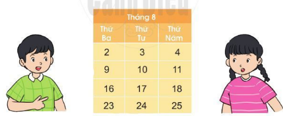 Quan sát tờ lịch tháng 8 để trả lời các câu hỏi.