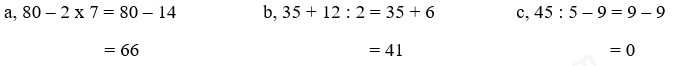 Tính giá trị của biểu thức. a, 80 – 2 x 7 Câu nào đúng, câu nào sai? a, 70 – 15 + 35 = 90