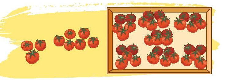 Ta thấy trong hộp có 7 nhóm cà chua, mỗi nhóm có 5 quả.