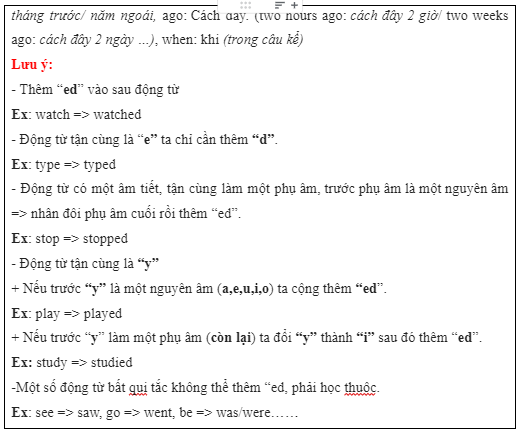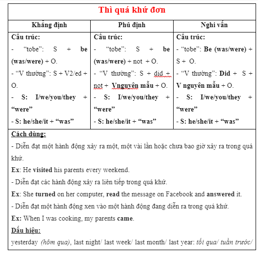 – Khi dùng câu quá khứ tì động từ phải chuyển về dạng nguyên mẫu.