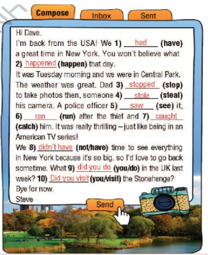 ( Dùng động từ trong danh sách thành thì qu.á khứ đơn để hoàn thành câu.)