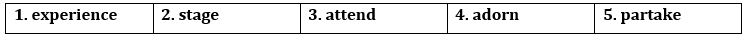 (Điền vào mỗi chỗ trống với partake, stage, attend, experience hoặc adorn. Sau đó nghe và kiểm tra.)
