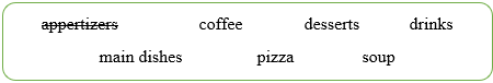 Student A: You are the waiter. Take the customer’s order. Then read the order back to them.
