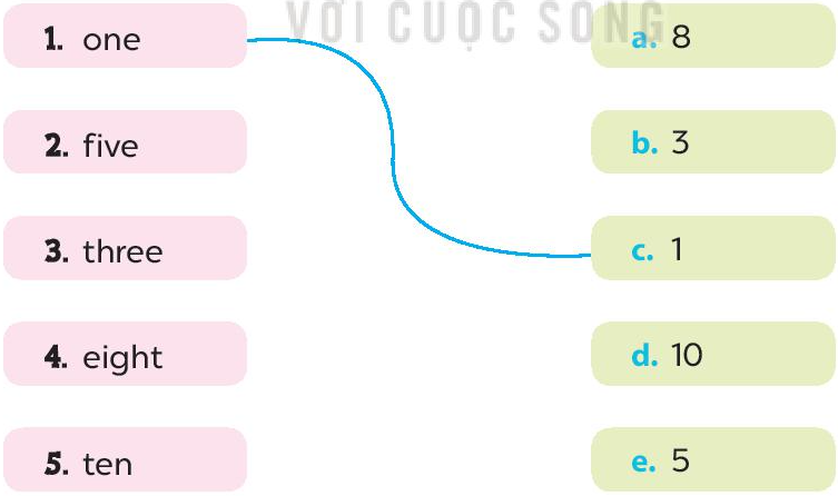 Three. Five. Eight. Ten. (Số 3, số 5, số 8, số 10.)
