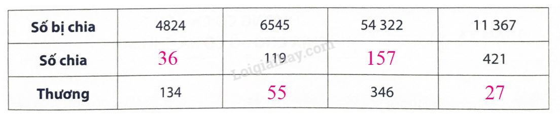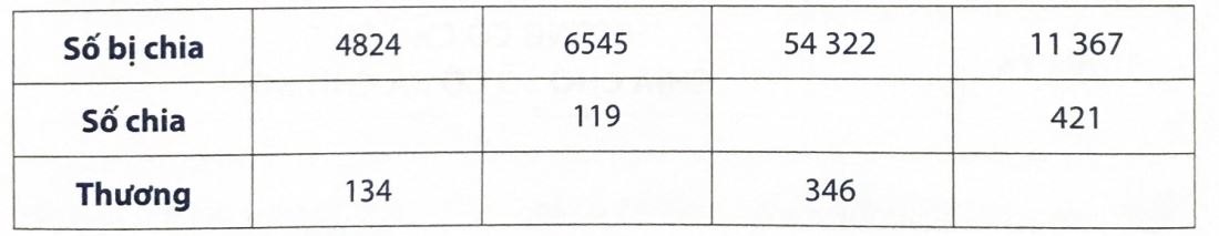 Thực hiện phép chia rồi điền số thích hợp vào ô trống.