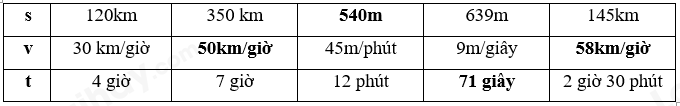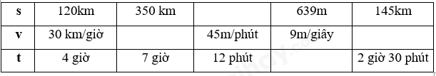 Cột 2: v = 350 : 7 = 50 km/giờ