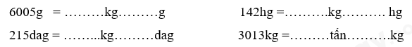 215dag = 2kg 15dag                 3013kg = 3tấn 13kg