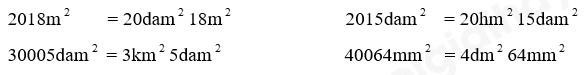 1 km2 = 10000dam2                  1dm2 = 10000mm2