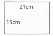 Hình chữ nhật có chiều rộng là 15 cm, chiều dài là 21 cm. Vậy tỉ số của chiều rộng và chiều dài của hình chữ nhật bên là $\frac{{15}}{{21}}$.