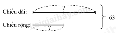 Một hình chữ nhật có nửa chi vi là 63 cm, chiều rộng bằng $\frac{1}{2}$ chiều dài. Tính diện tích hình chữ nhật đó.