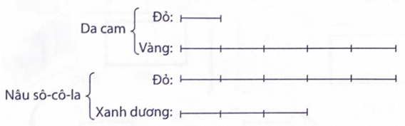 a) Em hãy nêu tỉ số giữa các màu để tạo ra hai màu sơn mới: da cam, nâu sô-cô-la.