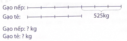 2. Tìm số gạo nếp, gạo tẻ khi biết hiệu và tỉ số của chúng.