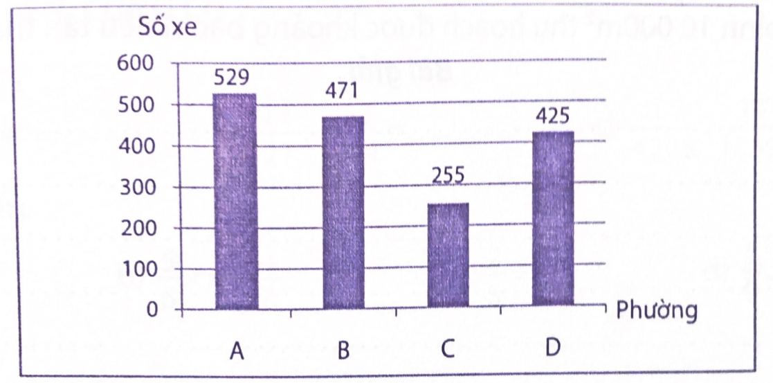 Biểu đồ bên dưới cho biết số lượng xe máy của bốn phường A, B, C, D: