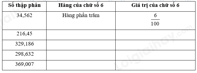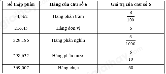 Xác định hàng của chữ số 6 và giá trị của chữ số đó theo mẫu.