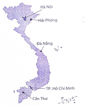 b) Tên các thành phố đó theo thứ tự tăng dần về diện tích: Đà Nẵng; Cần Thơ; Hải Phòng; TP Hồ Chí Minh; Hà Nội.