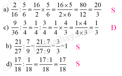 Kiểm tra lại cách chia hai phân số rồi xét tính đúng sai từng câu.