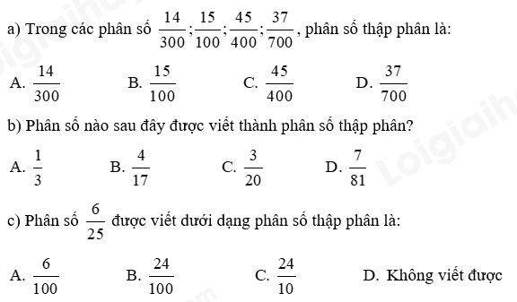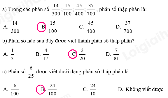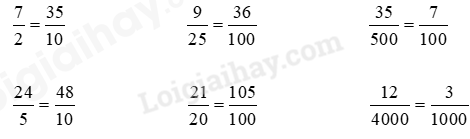 Nhân hoặc chia cả tử số và mẫu số của các phân số đã cho với một số thích hợp để được phân số có mẫu là 10; 100; 1000; ….