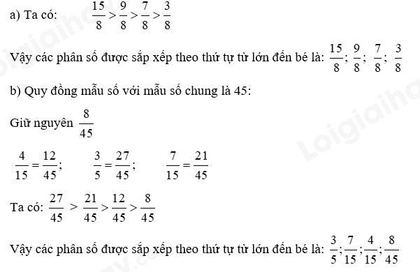 Sắp xếp các phân số sau theo thứ tự từ lớn đến bé: