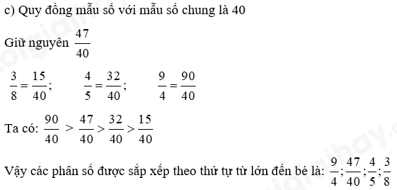 c) Khi quy đồng mẫu số hai phân số có thể làm như sau: