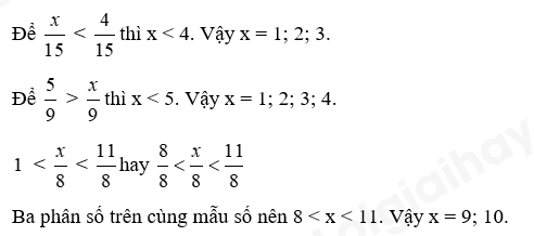Dựa vào cách so sánh hai phân số để tìm ra số tự nhiên x thỏa mãn.