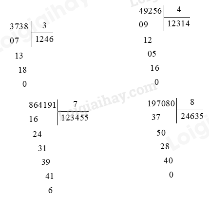 Đặt tính  rồi thực hiện chia lần lượt từ trái sang phải.
