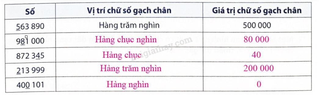 Xác định hàng của các chữ số rồi viết giá trị của các chữ số đó.