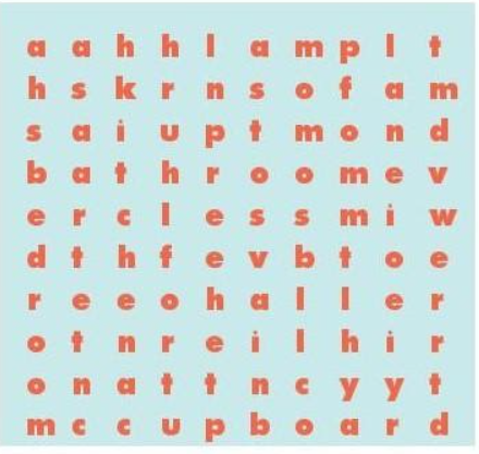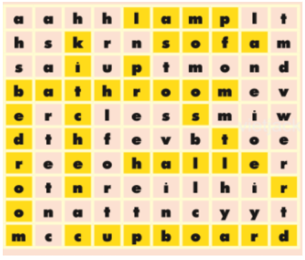 2. Find eight words related to topic “My house” in the word search puzzle. The words can run up, down, across, or diagonally.