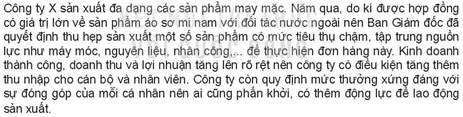 – Đọc trường hợp và nêu quyết định phân bố nguồn lực sản xuất và phân chia kết quả sản xuất của Công ty X trong trường hợp trên.