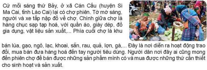 – Đọc thông tin và nêu được việc làm của người dân xã Cán Cấu ở chợ. Chỉ ra vai trò của hoạt động ở chợ đối với đời sống của người dân nơi đây.