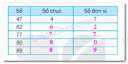 Quan sát số tự nhiên đã cho rồi điền số chục và số đơn vị thích hợp vào ô trống.