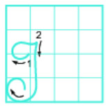 + Bước 1: Đặt bút trên ĐK ngang 3, trước ĐK dọc 2, viết nét cong trái, hơi lượn lên trước khi dừng dưới ĐK ngang 4 và bên phải ĐK dọc 2.