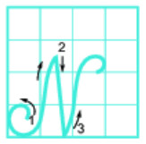 + Bước 3: Không nhấc bút, viết nét móc phải, hơi lượn vòng tại điểm bắt đầu và dừng bút trên ĐK ngang 3, trước ĐK dọc 4.