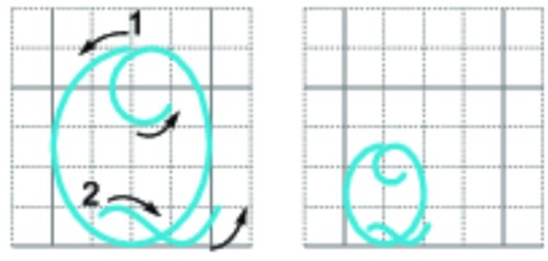 + Nét 1: Đặt bút trên đường kẻ 6, viết nét cong kín, phần cuối lượn vào trong bụng chữ. Dùng bút ở phía trên đường kẻ 4.
