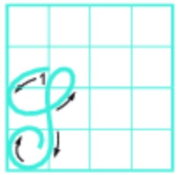* Cách viết: Đặt bút trên ĐK dọc 2, phía dưới ĐK ngang 4, viết một nét cong trái phía trên ĐK ngang 2, lượn vòng lên chạm ĐK dọc 2 viết nét thẳng đứng sát ĐK dọc 2, viết tiếp luôn nét cong trái và dùng bút cách bên phải ĐK dọc 2 một li, phía dưới ĐK ngang 2.