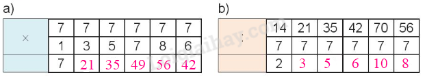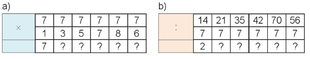 Tính nhẩm dựa vào bảng nhân 7 và bảng chia 7 rồi điền số thích hợp vào ô trống.