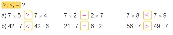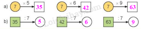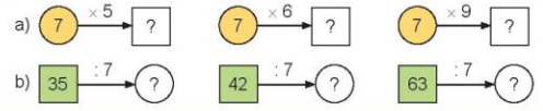 Tính nhẩm dựa vào bảng nhân 7 và bảng chia 7 rồi điền số thích hợp vào ô trống.