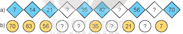 Đếm thêm 7 đơn vị hoặc đếm lùi 7 đơn vị rồi điền số còn thiếu vào ô trống.