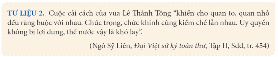 Khai thác tư liệu 2 và thông tin trong mục, trình bày kết quả, ý nghĩa cuộc cải cách của vua Lê Thánh Tông